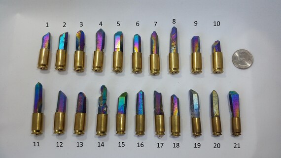 Each bullet is, well, the size of a bullet. Caliber is...unusual, if things like that matter to you; the bullets will fit any bullet-compatible gun, implausible as it may seem. There's a chicken scratch note tied to each one.shorts out electronics in a 3m radiusIt is, as you might expect from a bullet, one use only. Whoa.